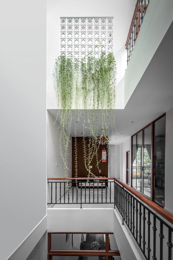 Nhờ ánh sáng tự nhiên từ giếng trời, ngôi nhà không phải sử dụng đèn điện vào ban ngày giúp tiết kiệm năng lượng tiêu thụ.