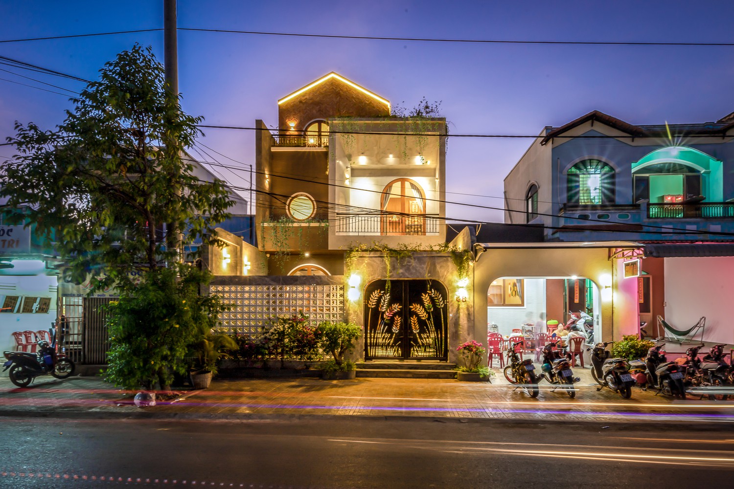 Những vòm cong gợi lên những ký ức quen thuộc về những ngôi nhà cổ mà vẫn giữ được nét hài hòa về hình thức kiến trúc với những ngôi nhà lân cận.