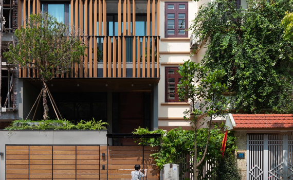 Tọa lạc tại khu đô thị Việt Hưng (Long Biên, Hà Nội), LH House là ngôi nhà hướng Tây sở hữu vẻ ngoài nổi bật với hệ thống lam gỗ mặt tiền rộng lớn, được lắp đặt dọc theo mặt tiền là nhằm mục đích hạn chế bức xạ mặt trời, đồng thời tạo hình cho công trình.