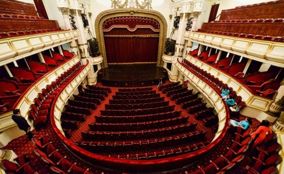Bước qua cửa chính, du khách đặt chân vào sảnh chính rộng rãi được lát bằng đá vân thạch, tường trang trí những họa tiết cổ điển, những chùm đèn cầu kỳ. Một cầu thang lớn hình chữ T dẫn lên tầng 2 và tầng 3 có các lô dành cho khách VIP và gia đình. Bên trong nhà hát có sân khấu rộng và một khán phòng với 870 chỗ ngồi.
