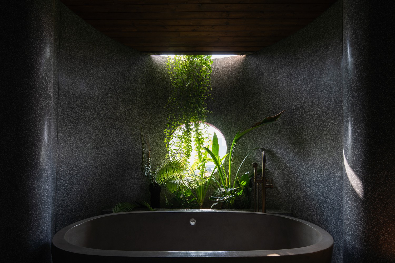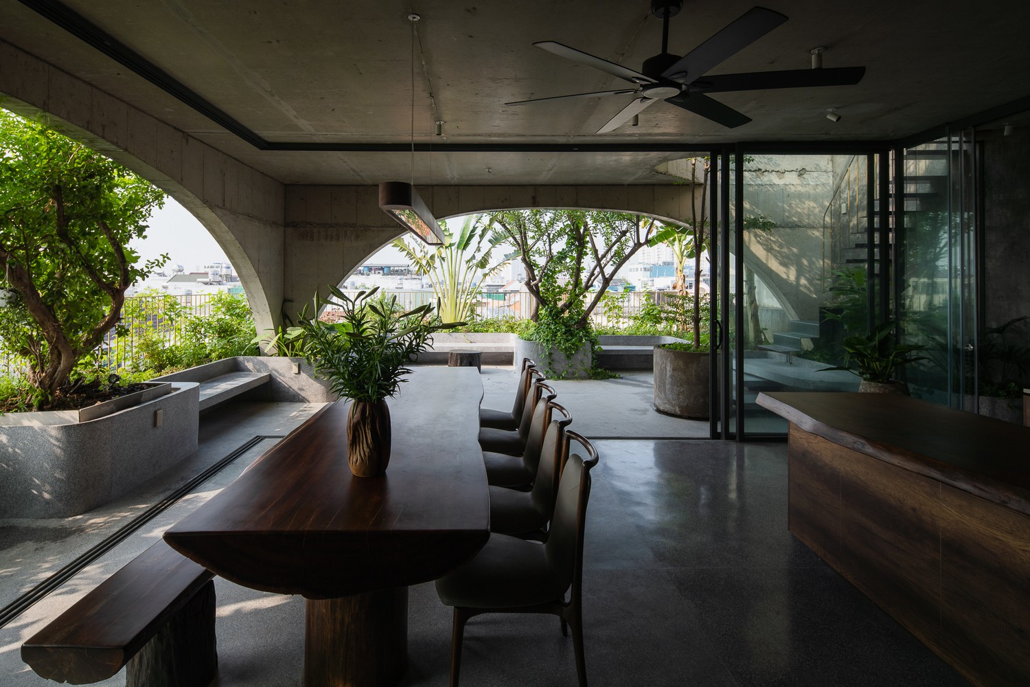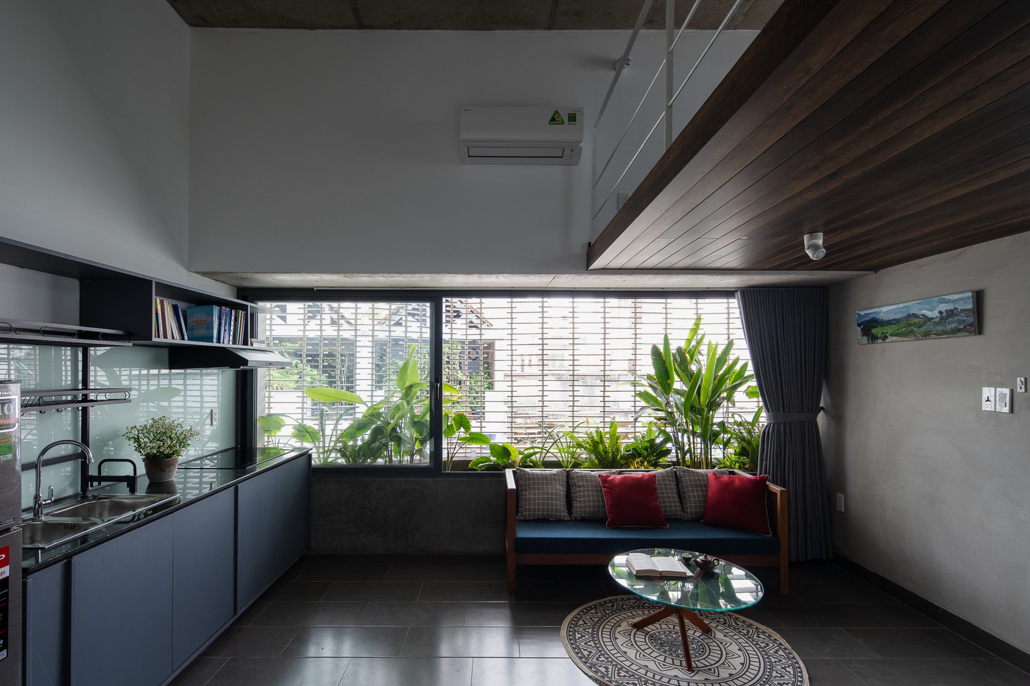 Căn nhà thể hiện rõ cá tính của gia chủ: thực tế, không gian tràn ngập cây xanh và vật liệu thô mộc.