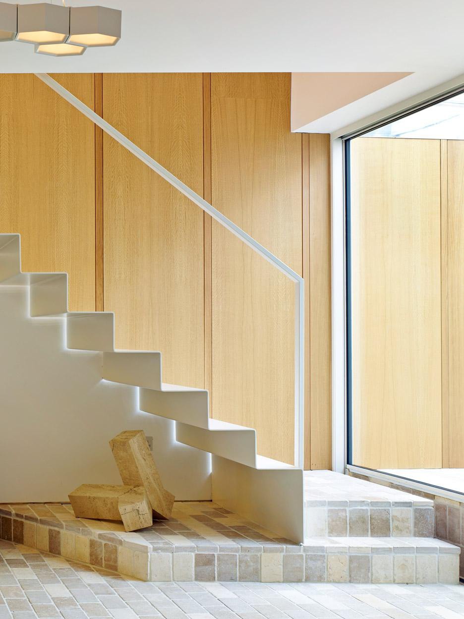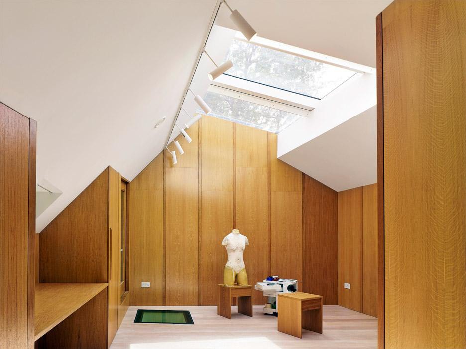 Vì diện tích đất không nhiều, xung quanh đã có nhà dân mọc lên, cho nên điều khó khăn đặt ra là bố trí nhiều cửa sổ như thế nào cho hợp lý. Các kiến trúc sư đã chọn giải pháp thiết kế cửa sổ trên trần nhà nhằm hút ánh sáng từ bên ngoài giúp không gian nội thất bừng sáng vào ban ngày.