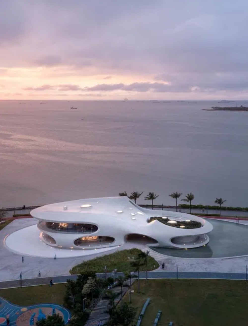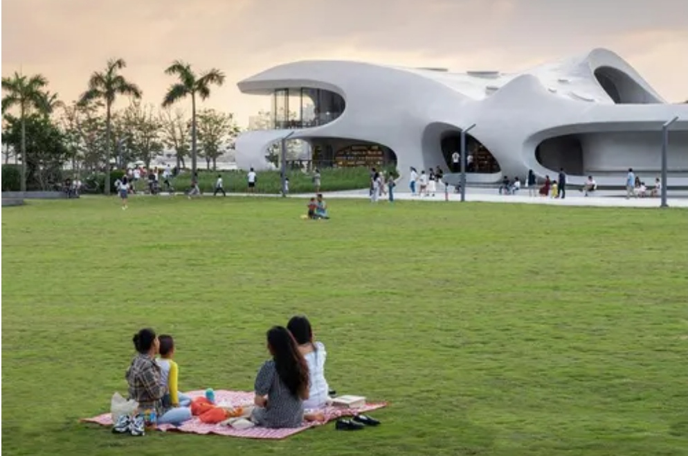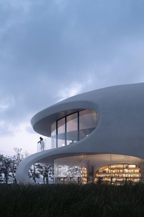 Tọa lạc tại Công viên Thế kỷ trên bờ Vịnh Hải Khẩu, Trung Quốc, dự án thư viện tích tiện ích giải trí có diện tích 4.397m2, với diện tích xây dựng là 1.38m2.