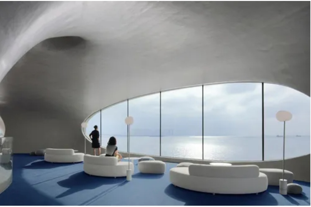 Tòa nhà nằm giáp biển, có tính nghệ thuật cao.