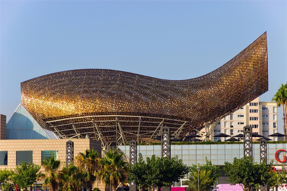 Olympic Pavilion ở Barcelona giống hình con cá vàng. Công trình dài 56m, cao 35m của KTS Frank Gehry.