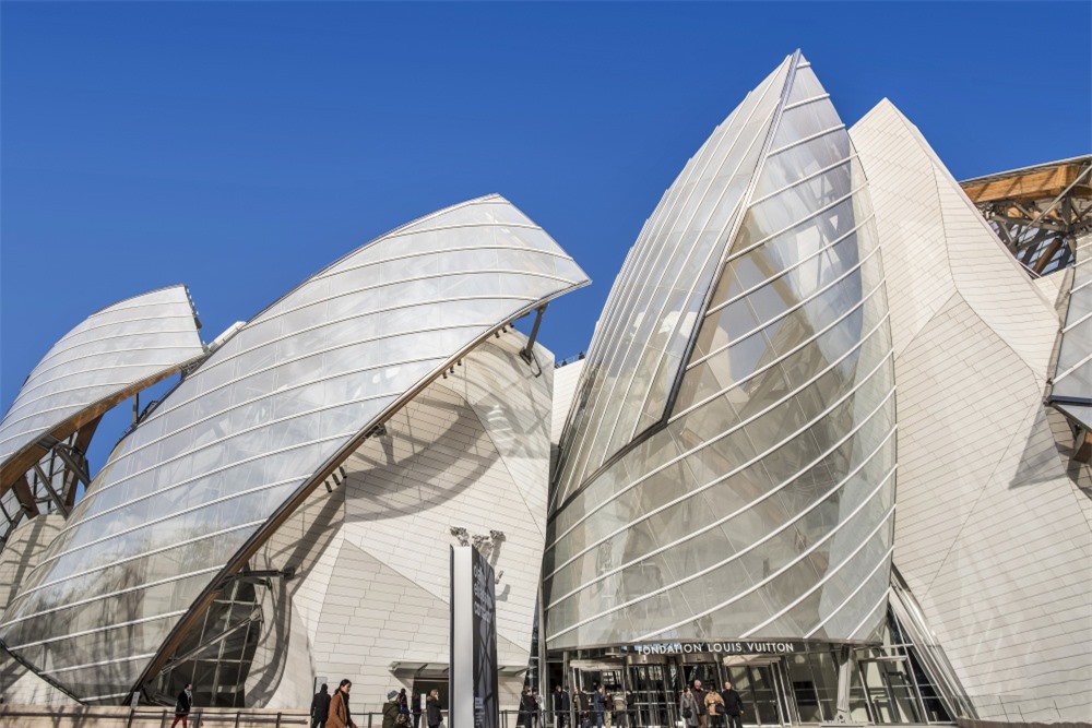Với chủ đề biển cả, tòa nhà Louis Vuitton Fondation của Frank Gehry được phủ bằng 12 cánh buồm kính cuồn cuộn.