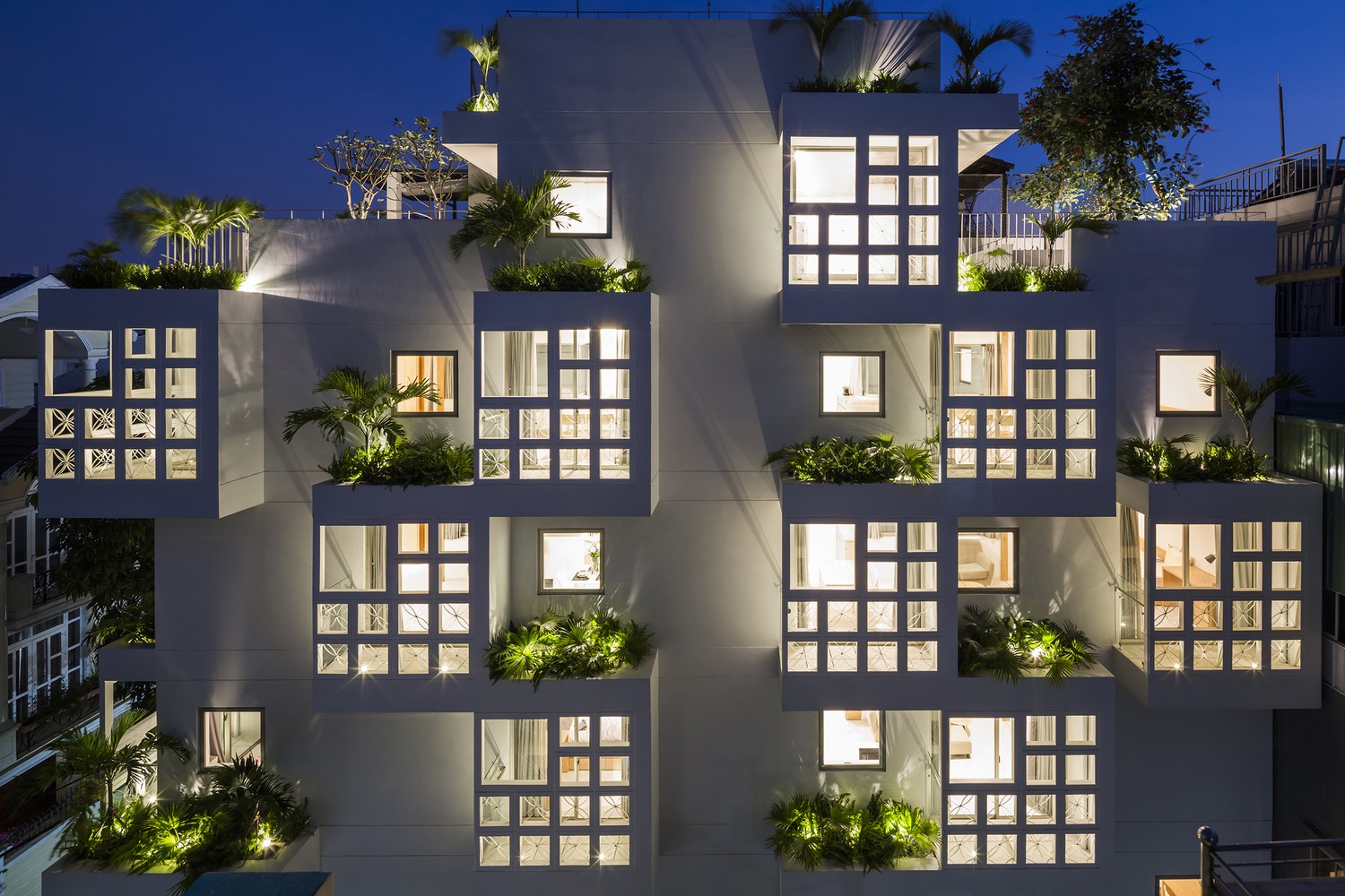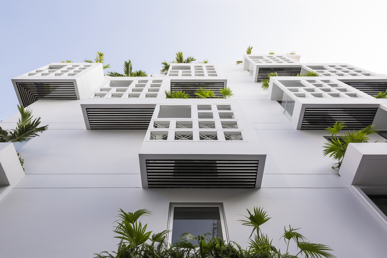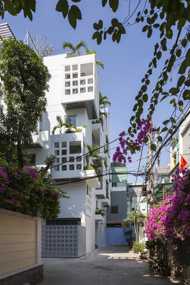 Khoảng trống bên trong cung cấp sân riêng, ban công giặt và trục thông gió.