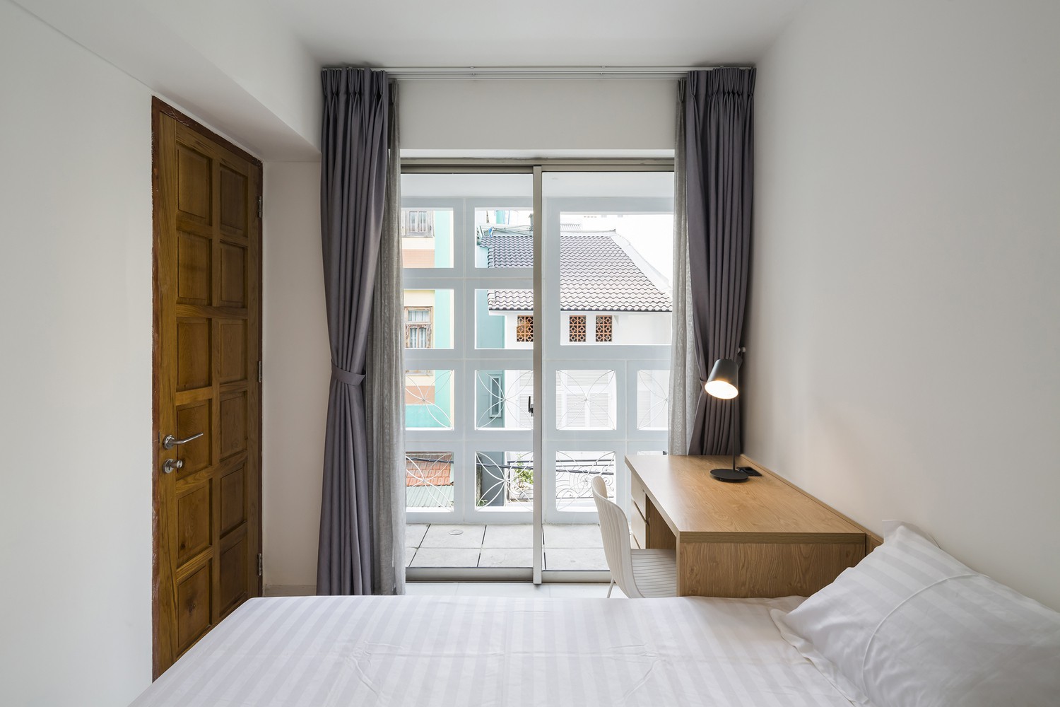 Trong khi đó, ban công bên ngoài cùng với lớp gạch hai lớp tạo nên một mặt tiền “da kép” bảo vệ nhà phố khỏi thời tiết nhiệt đới.