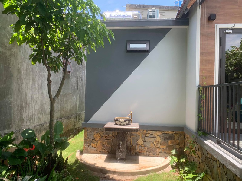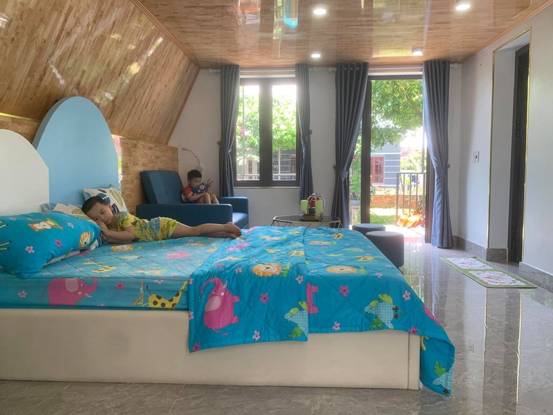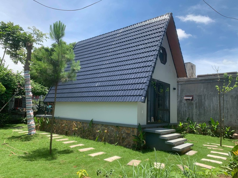 "Bố mẹ tôi có mảnh đất 1000m2. Anh chị em tôi xây dựng mỗi người một ngôi nhà trên mảnh đất này. Tôi lựa chọn Bungalow vì nhu cầu sử dụng không nhiều. Bình thường tôi sống ở Hà Nội, cuối tuần mới về nhưng từ khi có dịch bệnh, vợ chồng tôi gần như ở đây", anh Huy nói.