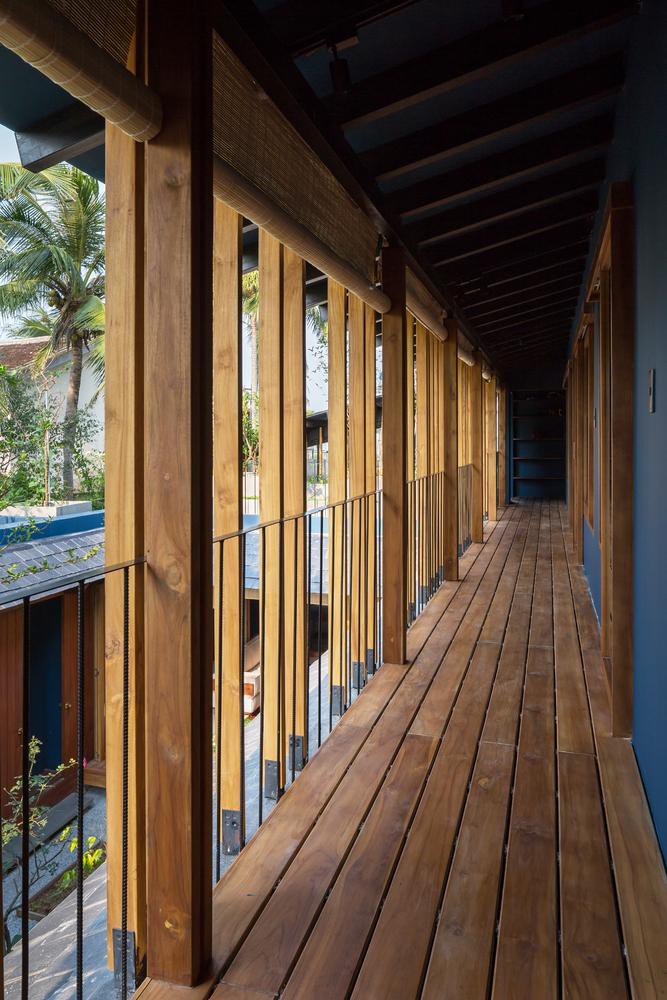 Do đó các kiến trúc sư đã thiết kế ngôi nhà rộng 180m2 theo phong cách quán xá truyền thống ở phố cổ Hội An nhưng cuộn lại như vỏ ốc bằng những vật liệu địa phương nên chi phí rất phải chăng.