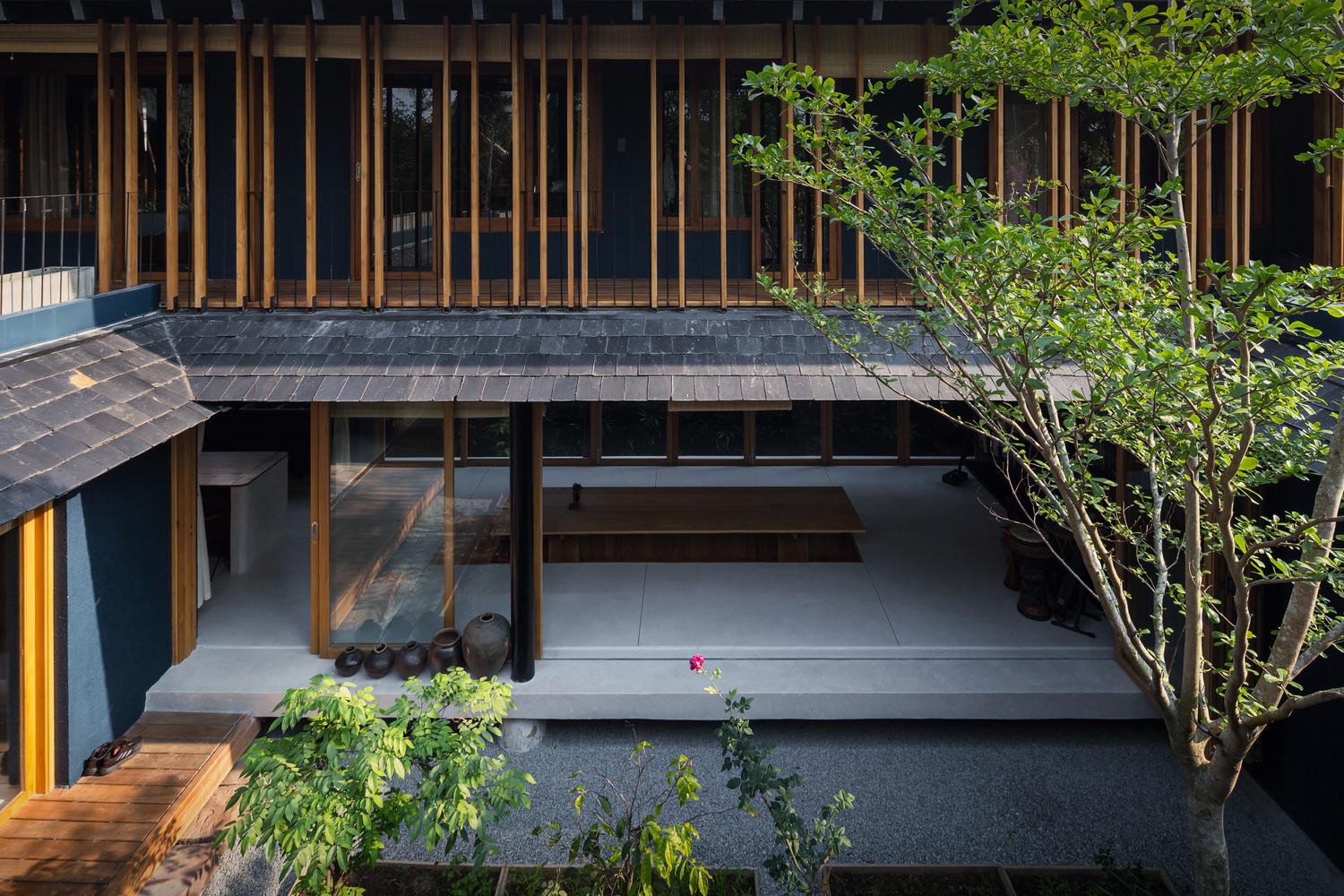 Ở giữa nhà là khu vườn với nhiều cây xanh cung cấp oxy và sinh khí cho người ở.