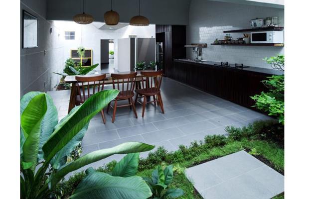 Phòng khách, phòng bếp hay phòng ngủ đều được phân chia rõ ràng bằng các tiểu cảnh sân vườn hút mắt.