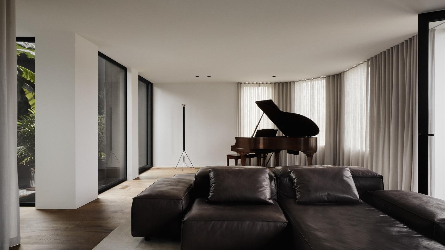 Ngôi nhà sử dựng sàn gỗ sồi sơn dầu để đảm bảo sự cân bằng tinh tế giữa sự ấm áp và màu sắc cộng hưởng trong toàn bộ không gian.