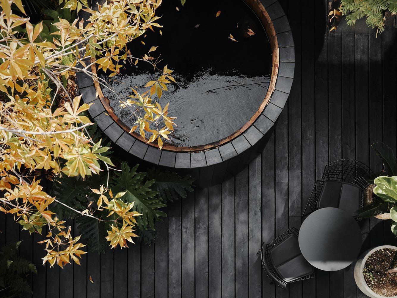 Ở đây còn có một bộ bàn ghế để tiếp khách và bồn ngâm kiểu Nhật Bản. Các kiến trúc sư cho biết, sân trong thực sự làm nổi bật không gian, đồng thời tạo ra một khu vực ngoài trời rất riêng tư cho khách hàng. “Nó cũng cho phép chúng tôi đưa ánh sáng dồi dào vào lõi của tòa nhà”.