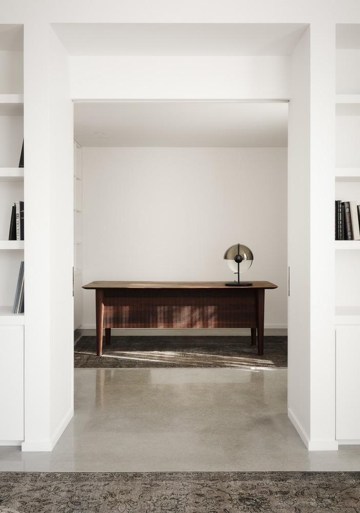 Để tôn trọng mặt tiền của ngôi nhà, kiến trúc sư chỉ thực hiện những thay đổi tinh tế đối với các yếu tố hiện có để chuyển ngôi nhà từ quá khứ sang hiện tại. Họ đã rút ruột hoàn toàn nội thất hiện có của ngôi nhà và bắt tay vào thiết kế lại từ đầu.