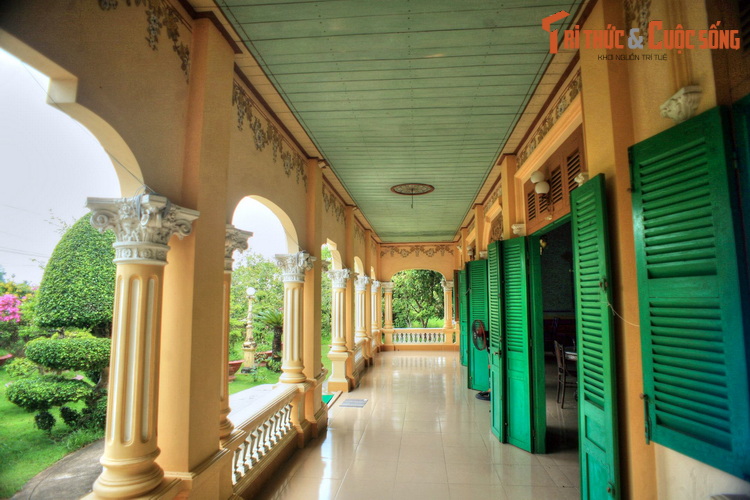 Ngôi nhà nằm trong khuôn viên rộng trên 2 ha, được bao quanh bởi một vườn cây cảnh và cây ăn trái đa chủng loại đặc sản của địa phương. Công trình được cất trên nền cao 0.5 mét nên không bị lũ bị ngập khi mùa mưa đến.