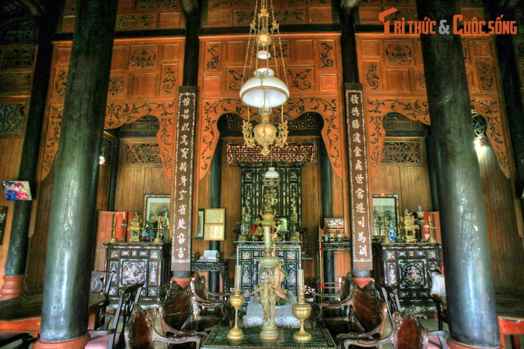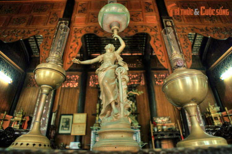 Nét Việt toát ra từ các món đồ nội thất gỗ, đồ thờ bằng đồng truyền thống, nổi bật là ba bộ tủ thờ được cẩn ốc xà cừ óng ánh có từ năm 1924, đựơc bày trí theo nguyên tắc "Ðông bình - Tây quả".