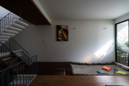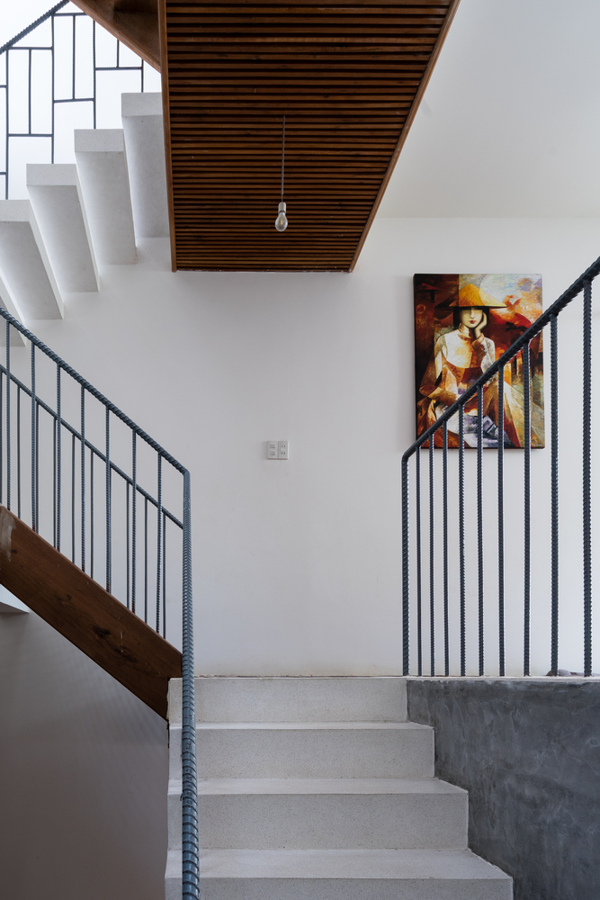 Xuyên suốt trong ngôi nhà là chất liệu gỗ và những vật liệu mộc mạc như tường xi măng đánh, những mảng gạch không trát... vừa hợp với chất ngày xưa của thế hệ ông bà, vừa sạch sẽ, không kém phần hiện đại.