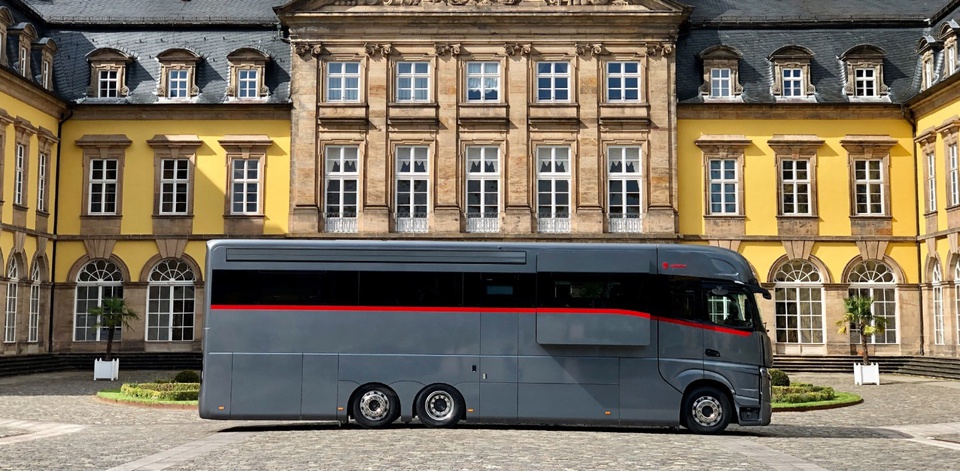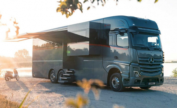 Dembell Motorhome là mẫu nhà di động được phát triển từ xe đầu kéo Mercedes-Benz Actros với nhiều tiện ích độc đáo, bao gồm tùy chọn trang bị garage ôtô.