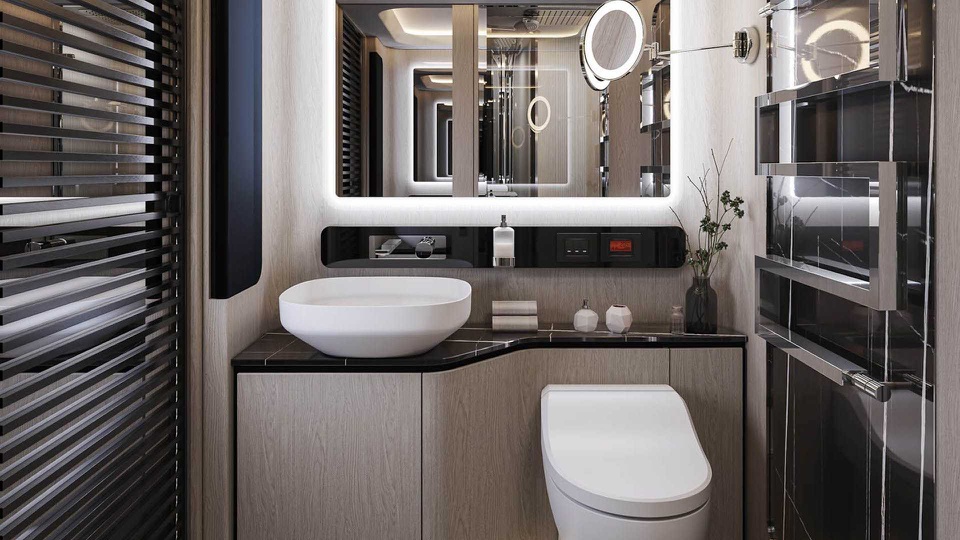 Bên trong, Dembell Motorhome được thiết kế theo phong cách du thuyền cao cấp với nội thất tiện nghi và rộng rãi. Khách hàng có thể tùy chọn 3 màu sàn gỗ và hàng loạt trang bị để cá nhân hóa chiếc Dembell Motorhome.