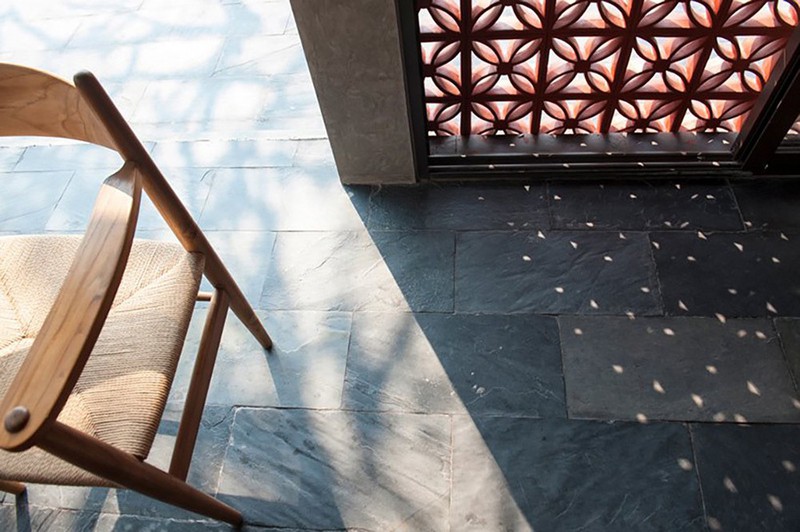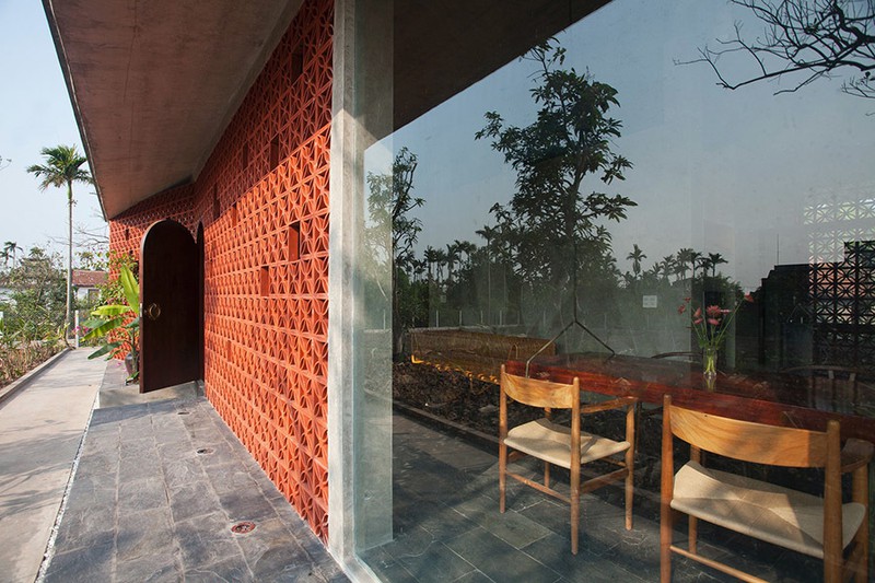 Lớp ngoài cùng được làm từ những viên gạch thông gió Bát Tràng nhằm mang ánh sáng ban ngày và không khí trong lành vào nhà. Lớp thứ hai mang đến sự riêng tư đồng thời cho phép ánh sáng chiếu vào trong nhà.