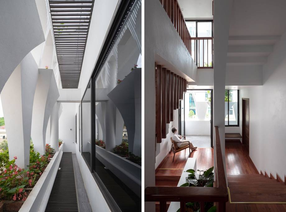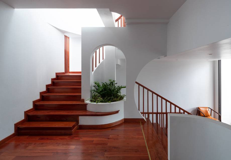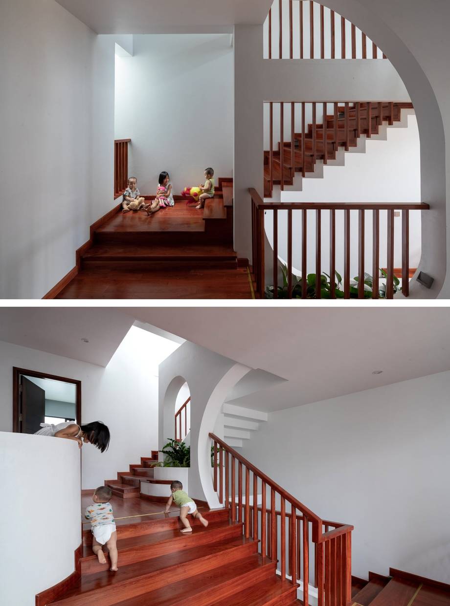 Thiết kế lệch tầng tạo nên độ chênh cao, cho phép nhiều luồng gió mát được lưu thông đến mọi nơi trong nhà.