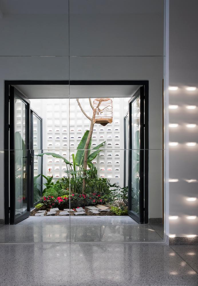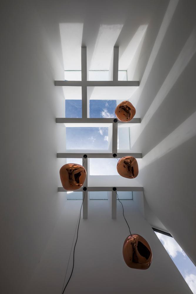 Kiến trúc sư dùng giếng trời giữa nhà để phân chia không gian sinh hoạt và thư giãn để giúp các không gian luôn tràn ngập ánh sáng và gió tự nhiên.