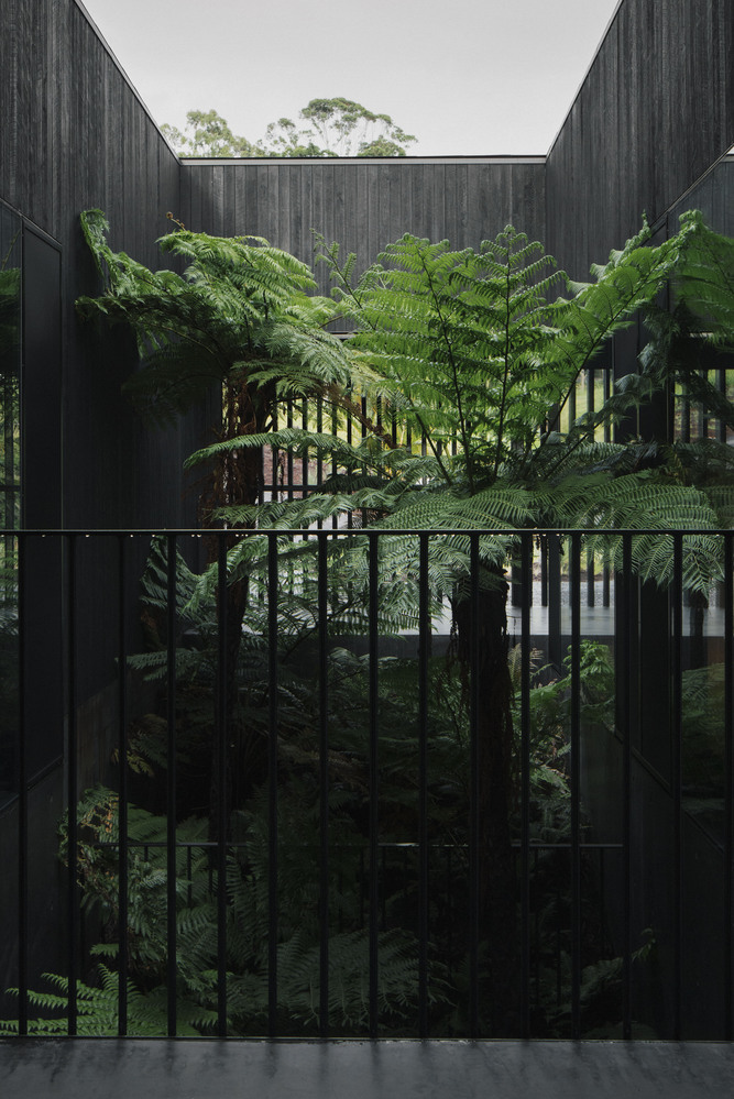 Ngôi nhà hai tầng rộng hơn 400 m2 trên một ngọn đồi ở vùng nông thôn New South Wales được thiết kế với mục tiêu trở thành "thánh địa" nghỉ dưỡng cho gia chủ. Nhìn từ bên ngoài, màu đen của công trình với thiết kế song sắt khiến nó trông như một nhà tù.