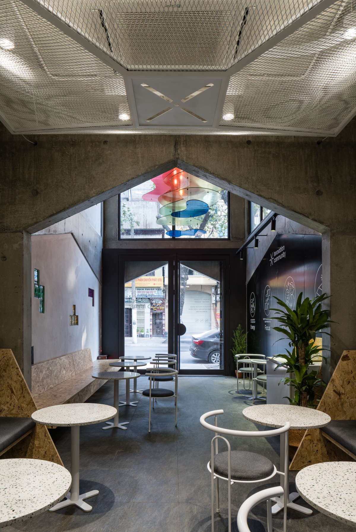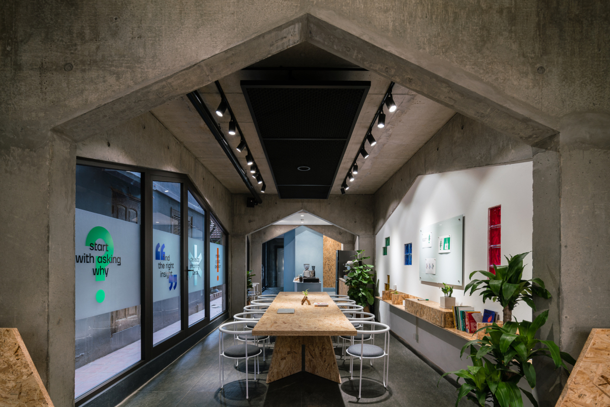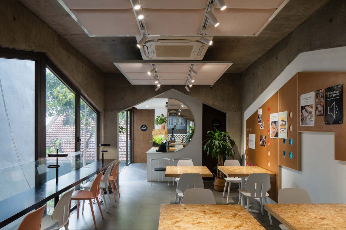 Bố cục không gian giúp người sử dụng dễ dàng chuyển đổi nhu cầu sử dụng mà không cần sửa chữa, thay đổi gì. Hiện tại, hai tầng dưới của tòa nhà dùng làm cửa hàng cafe và Co-working space. Đây cũng là phần mở rộng của các tầng ở và dịch vụ phía trên khi mọi người có những hoạt động công cộng như hội họp, gặp gỡ khách hàng, đối tác, bạn bè.