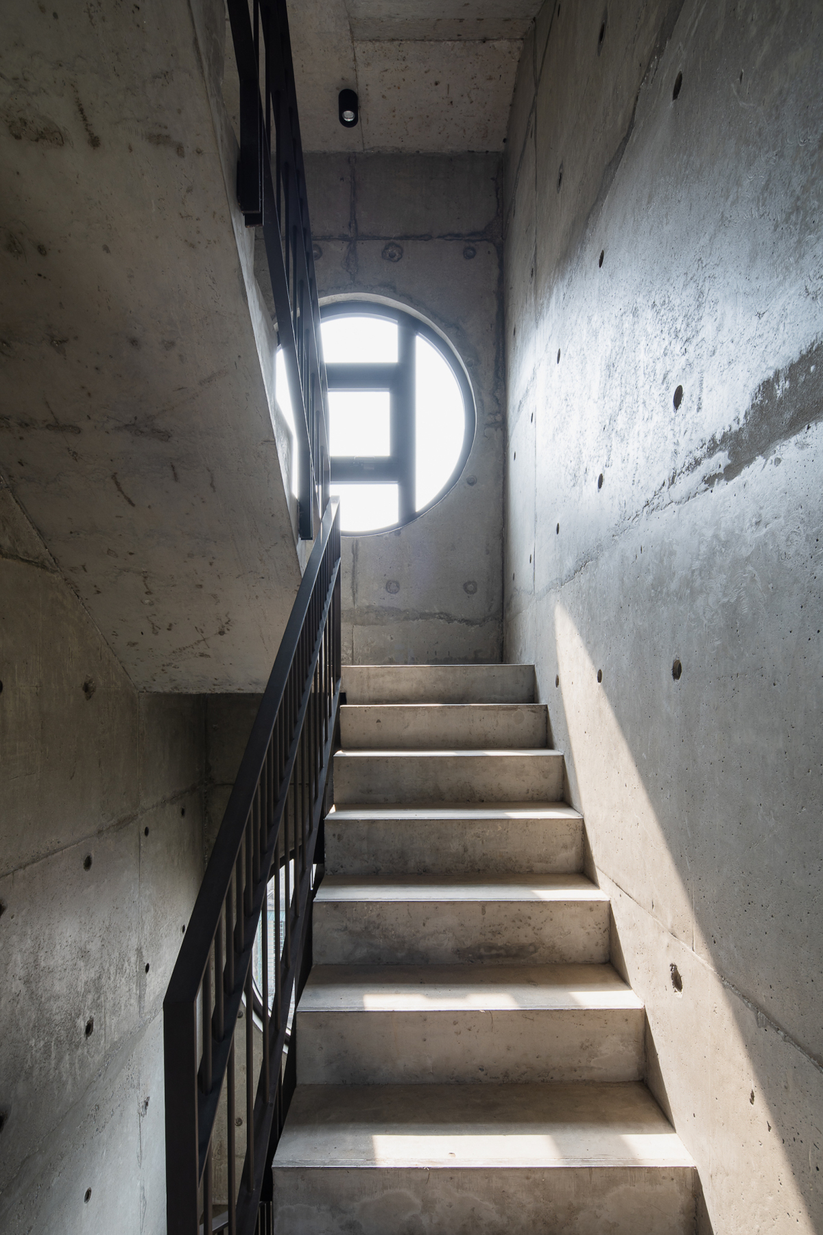 Để kết nối các tầng, nhóm thiết kế bố trí trục cầu thang, thang máy và kỹ thuật phía sau công trình. Nó cũng hỗ trợ giảm bức xạ nhiệt của hướng Tây vào nhà.