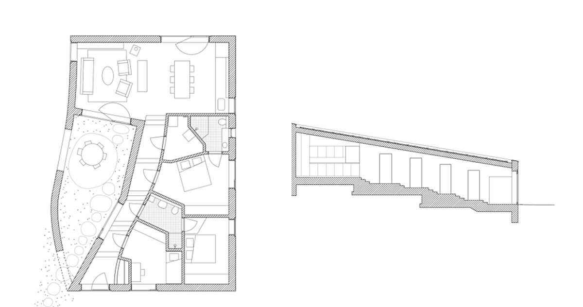 “Hầu hết các ngôi nhà lâu đời ở đây đều sử dụng mặt cắt lệch tầng, nhưng vì diện tích khiêm tốn nên chúng tôi ưu tiên thiết kế dựa vào mối quan hệ chặt chẽ với địa hình tốc”, nhóm thiết kế cho biết thêm.