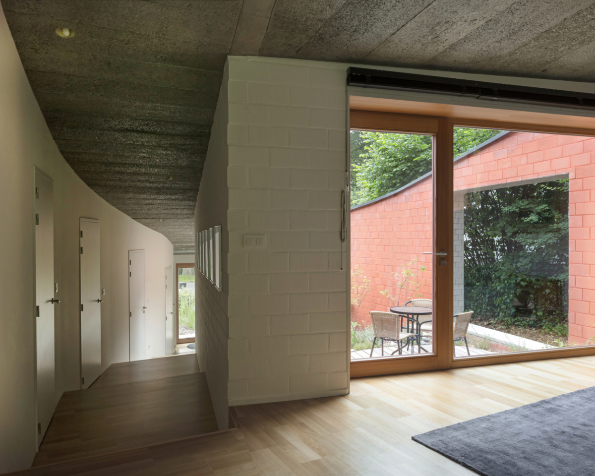 Một trong ba kiến trúc sư thiết kế, Dirk Somers cho biết: “Chúng tôi thích ý tưởng coi ngôi nhà như một lối đi lên dốc trên một con đường. Khi bạn đi bộ trên 'con đường', qua hành lang, bạn sẽ thấy được cây cối ở thung lũng Scheldt”.