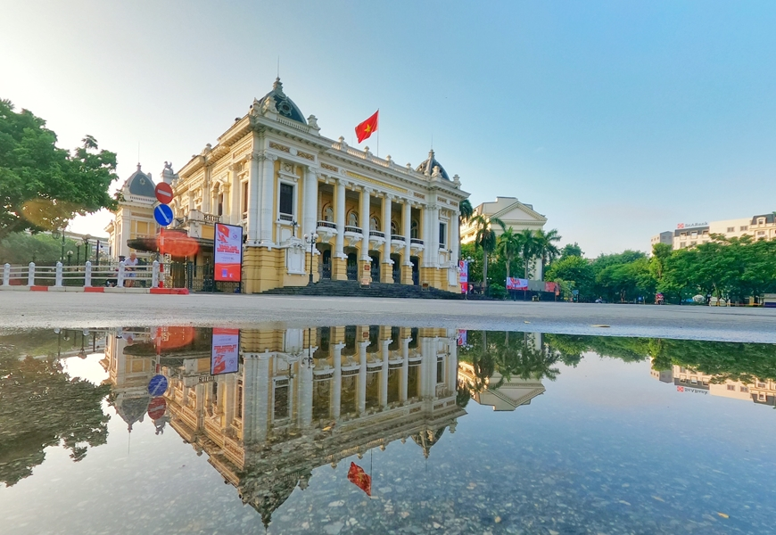 Nhà hát Lớn Hà Nội nằm trên Quảng trường Cách mạng Tháng Tám. Nằm giữa không gian náo nhiệt của trung tâm TP Hà Nội nhưng công trình luôn là biểu tượng của sự tinh tế, sâu lắng trong nét kiến trúc cổ điển.