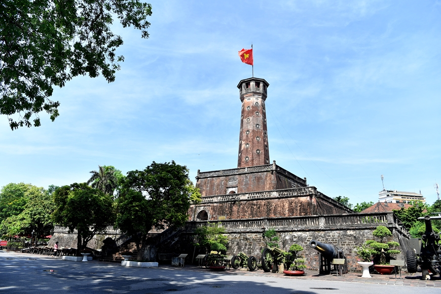 Lá cờ đỏ sao vàng tung bay trên đỉnh Cột cờ.