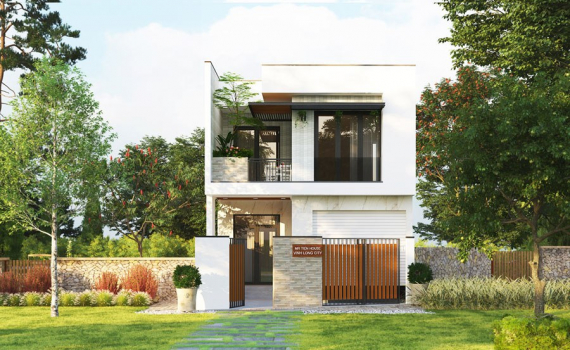 Kiến trúc khối hộp ấn tượng với khung hình được đặt vào nhau mang đến sự đặc biệt trong thiết kế nhà 2 tầng.