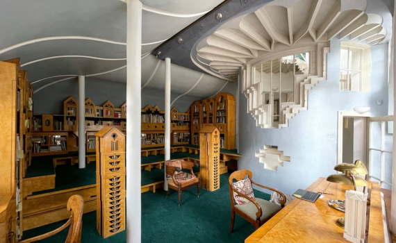 Phòng làm việc của Jencks được gọi là thư viện kiến trúc. Tại đây, gia chủ xếp tài liệu theo chủ đề trong những chiếc tủ hình tòa nhà, tạo nên "thành phố sách". Bản thân Jencks cũng nổi tiếng là "người yêu sách đến phát điên".