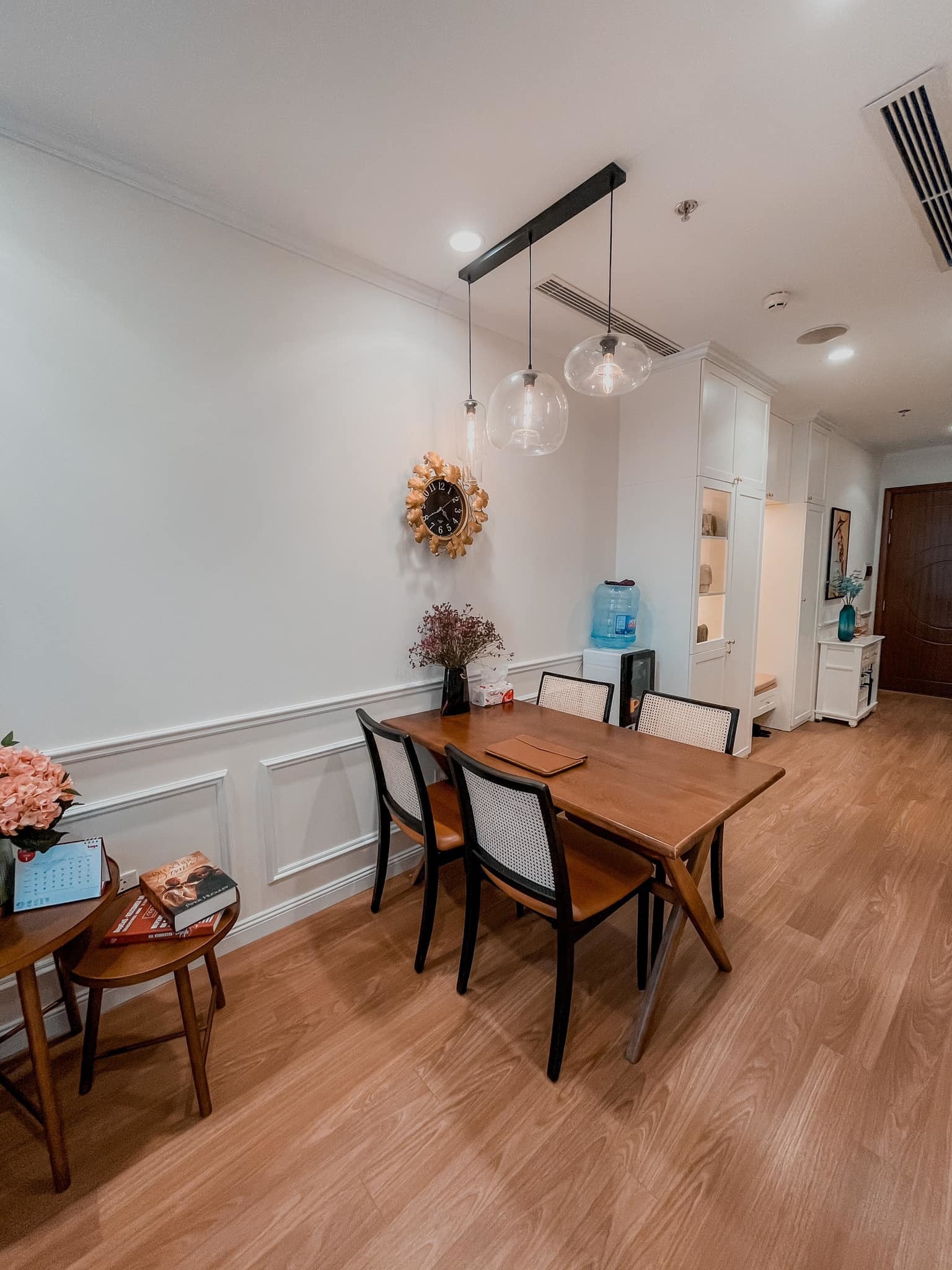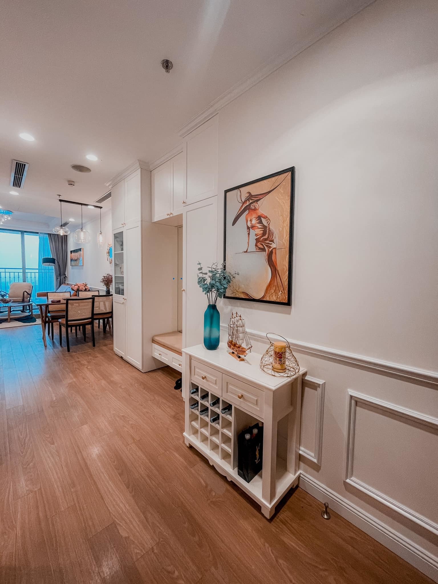 Bàn ăn, tủ giày đặt ngay sảnh ra vào căn hộ.