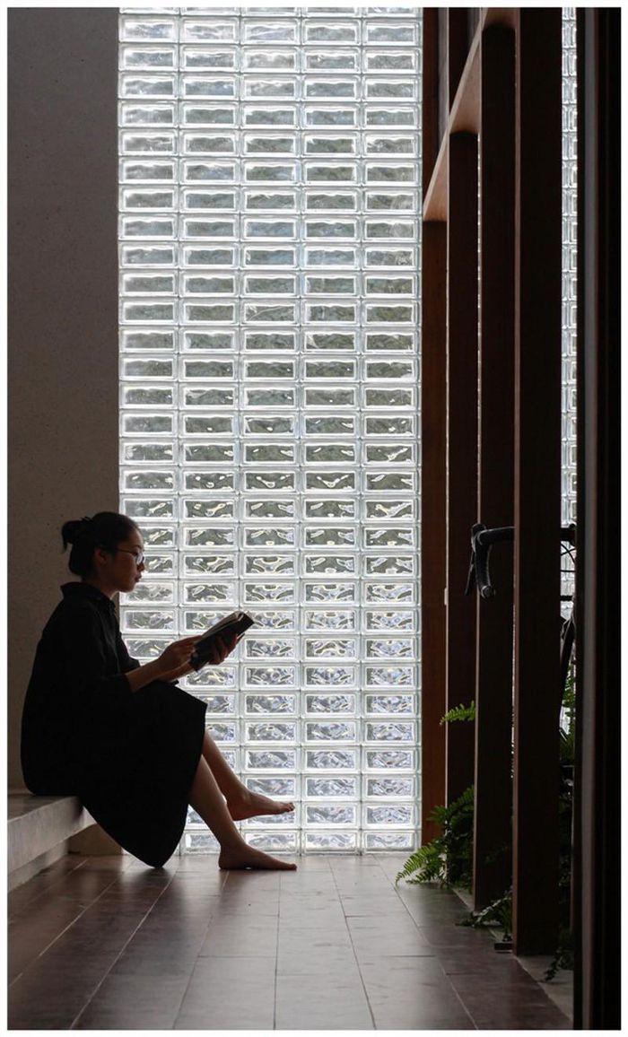 Những tấm kính trong suốt hình vuông cũng là cách lấy sáng cho không gian trống của KTS.
