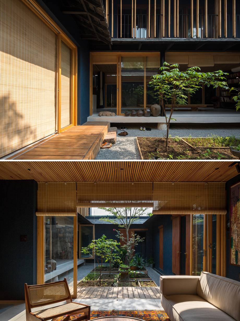 Mọi hoạt động trong nhà được liên kết với nhau qua các khoảng trống với cây xanh, mặt nước và ánh sáng tự nhiên.