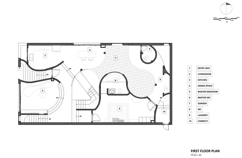 Mỗi vị trí trong nhà đều có một góc nhìn khác nhau được cố tình tạo nên như một bức tranh thú vị. Kiến trúc sư bố trí các không gian theo đường uốn lượn để tối đa hóa sự kết nối giữa bên trong và bên ngoài, đặc và rỗng, con người và thiên nhiên.