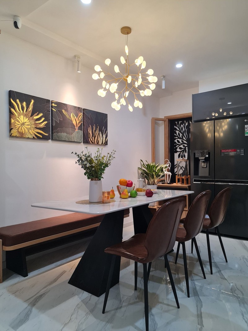 Gia chủ là tín đồ của decor nên nơi ăn uống, quây quần của cả nhà được chăm chút khá tỉ mỉ.