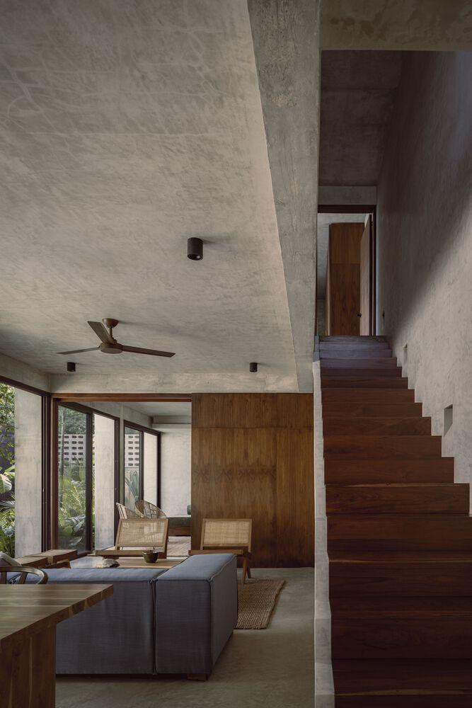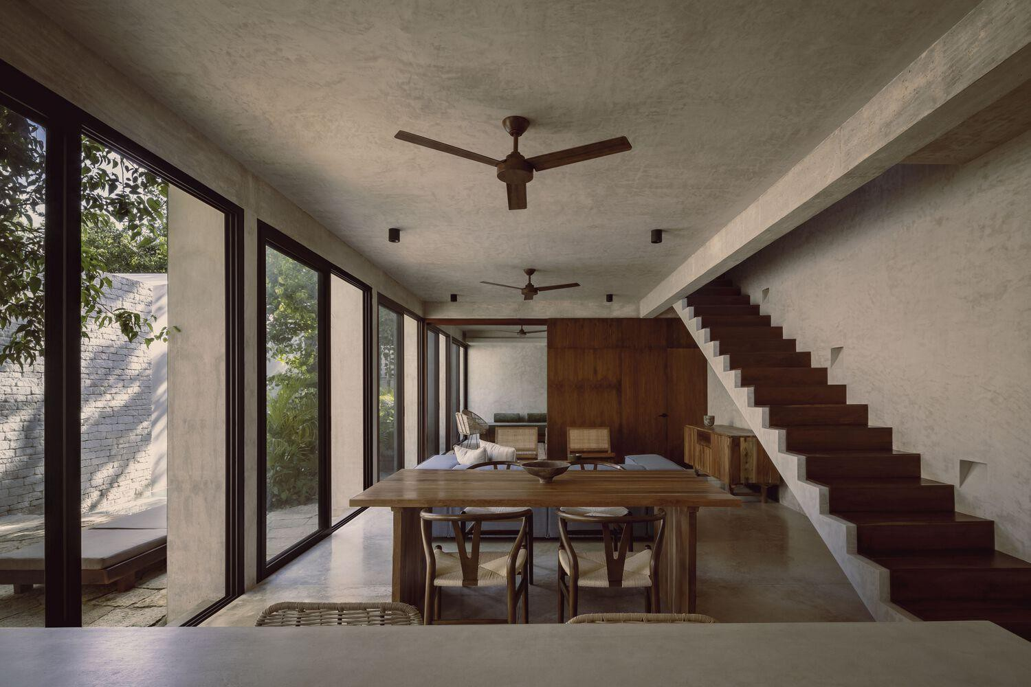Ngôi nhà chỉ trát vữa mà không sơn để đem lại cảm giác đơn giản, dễ chịu cho người ở.