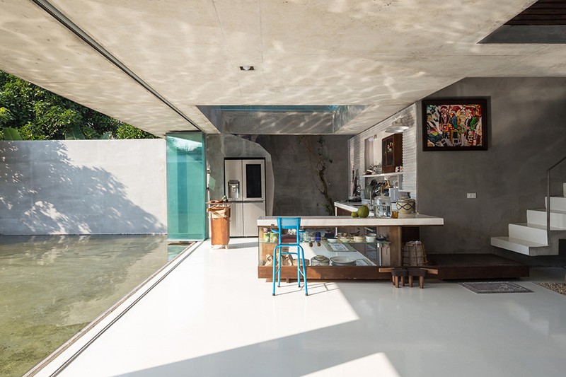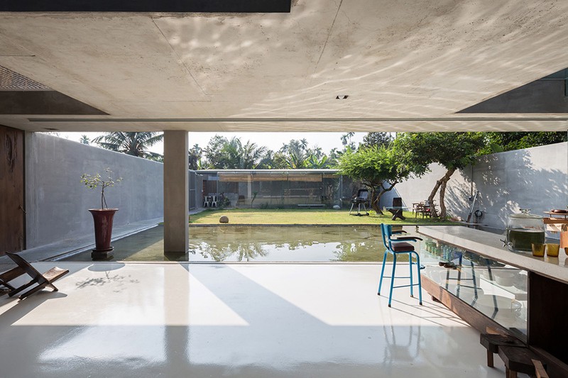 Tiếp giáp ao nước là không gian nhà bếp riêng biệt.