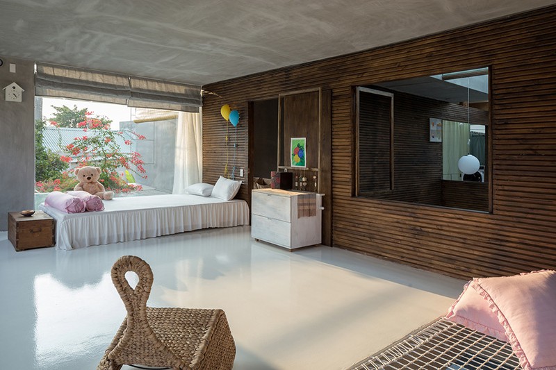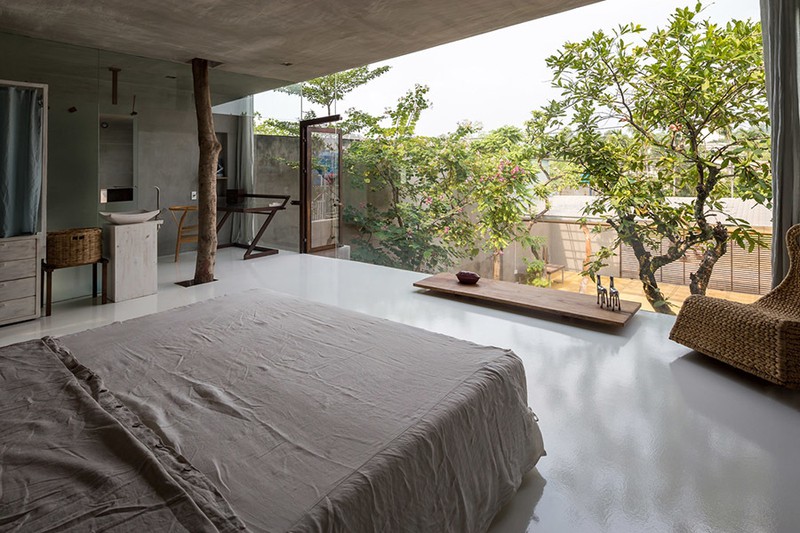 Phòng ngủ nhỏ có hướng nhìn ra sân vườn sau nhà.