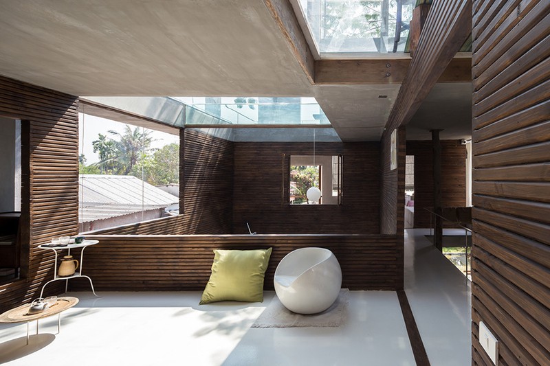 Trung tâm tầng 2, kiến trúc sư thiết kế kết cấu vách gỗ tạo nên sự gần gũi. Không gian này cũng được thiết kế thông thoáng và tràn ngập ánh sáng tự nhiên.