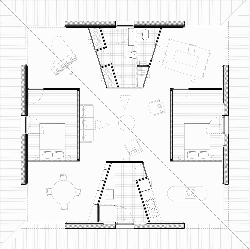 Trong nhà, các khu vực chức năng được bố trí theo hình ngôi sao.