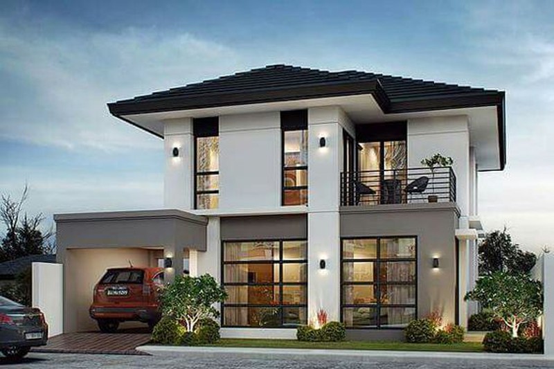Nhà mái Thái 2 tầng hiện đại sẽ không có các đường phào chỉ phức tạp, thay vào đó là các mảng khối vuông vức, đường nét khỏe khoắn để tạo nên sự trẻ trung, năng động, sang trọng.