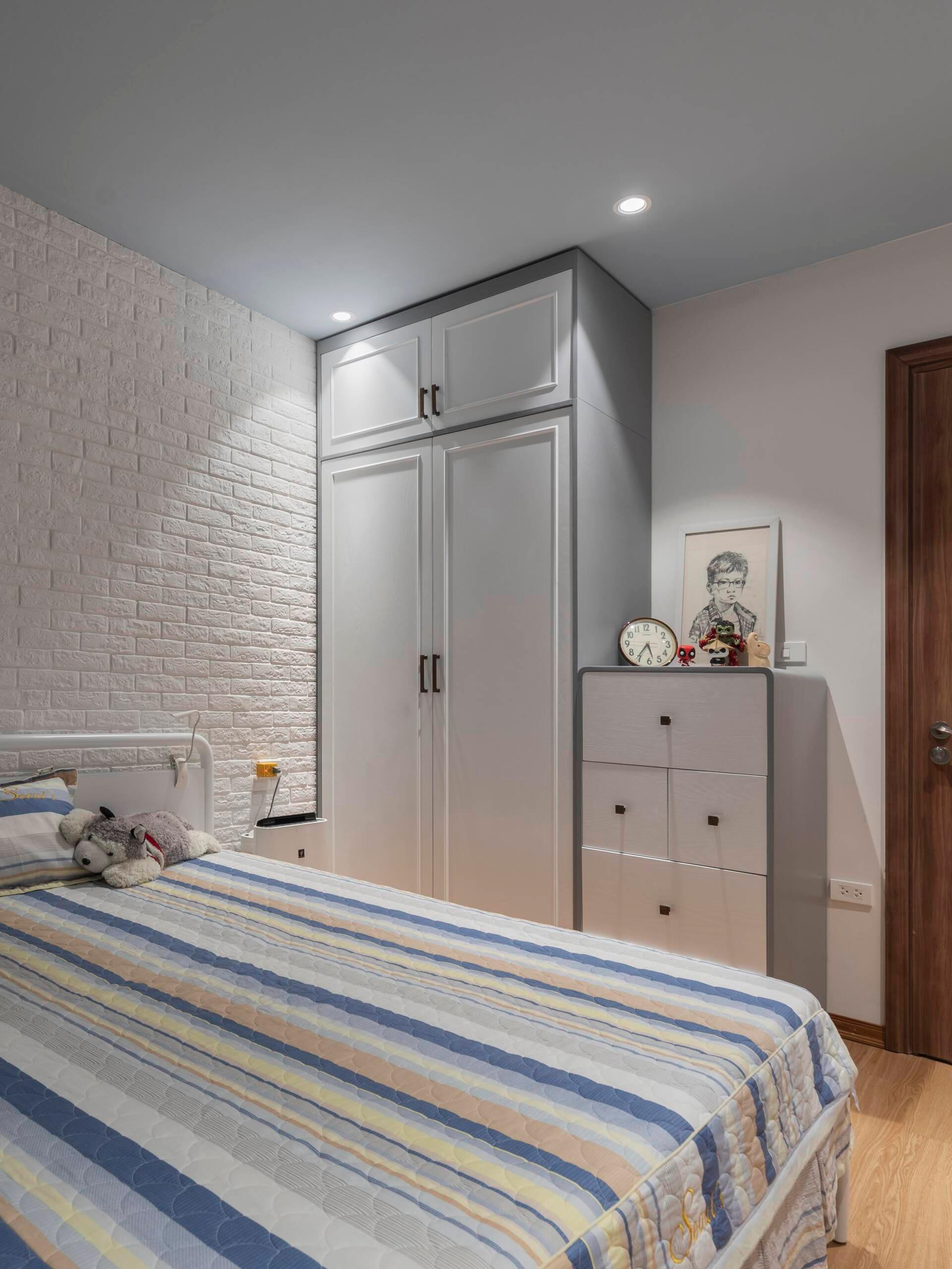 Không gian phòng ngủ của con trai gia chủ gọn gàng và đơn giản.