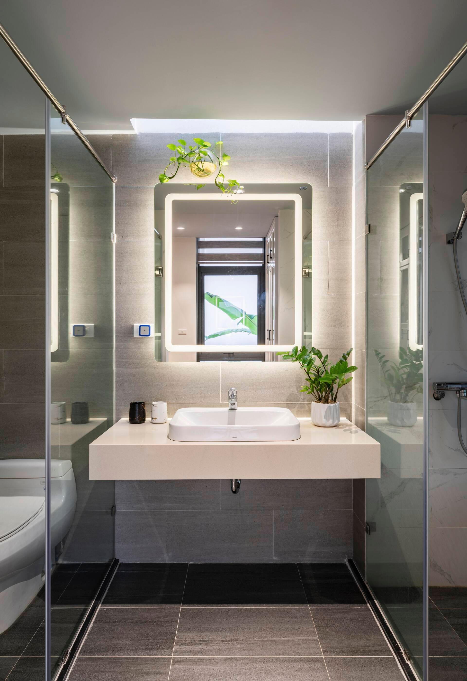 Trong phòng ngủ có nhà vệ sinh tiện nghi, phân rõ khu vệ sinh – bồn rửa – phòng tắm riêng bằng các vách kính cường lực.