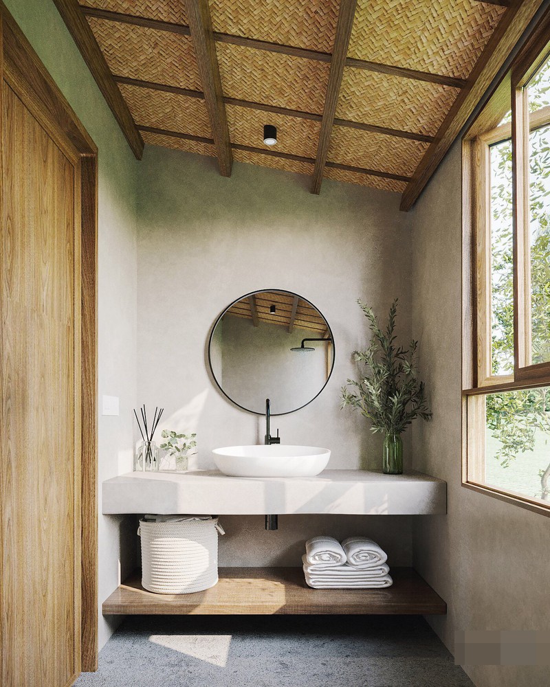 Phòng tắm đúng tính chất nghỉ dưỡng, hòa mình với thiên nhiên.